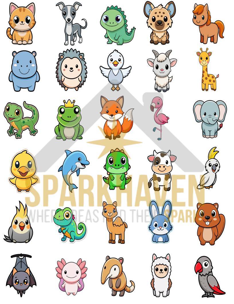 Cute Kawaii Animal Stickers Pack 1 — 30 PNG & SVG Stickers + Printable Sheets